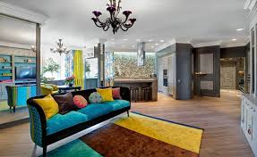 Не волнуйтесь, участие в интерьере могут принимать не только яркие цвета: пастельные тона не будут не использованными в этой стилистике. Сочитайте между собой бирюзовый и малиновый оттенки, ведь они будут считаться действительно удачными. Можно пользоваться сочетаниями фиолетовых и лиловых оттенков с черным или белым. Но не стоит допускать ошибок в сочетании. Используйте специальные цветовые таблицы, чтобы не превратить интерьер в разноцветное нечто.